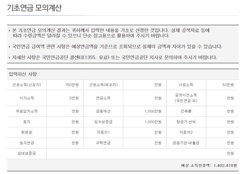 기초연금 수령액을 모의계산하기 위해서는 자신의 소득과 재산 정보를 입력해야 합니다.