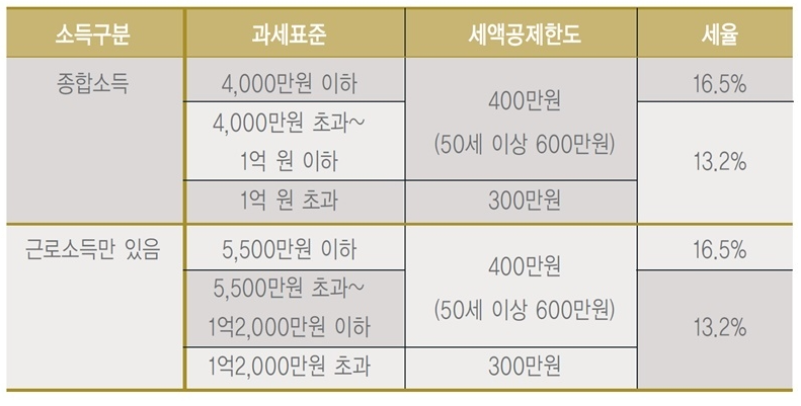 반면, 5,500만원을 초과하는 경우 세액공제율은 13.2%로, 최대 79.2만원의 세액공제를 받을 수 있습니다.